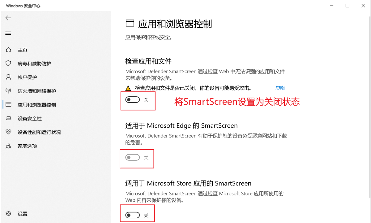 关闭SmartScreen后,即可正常安装和运行海豹翻译客户端