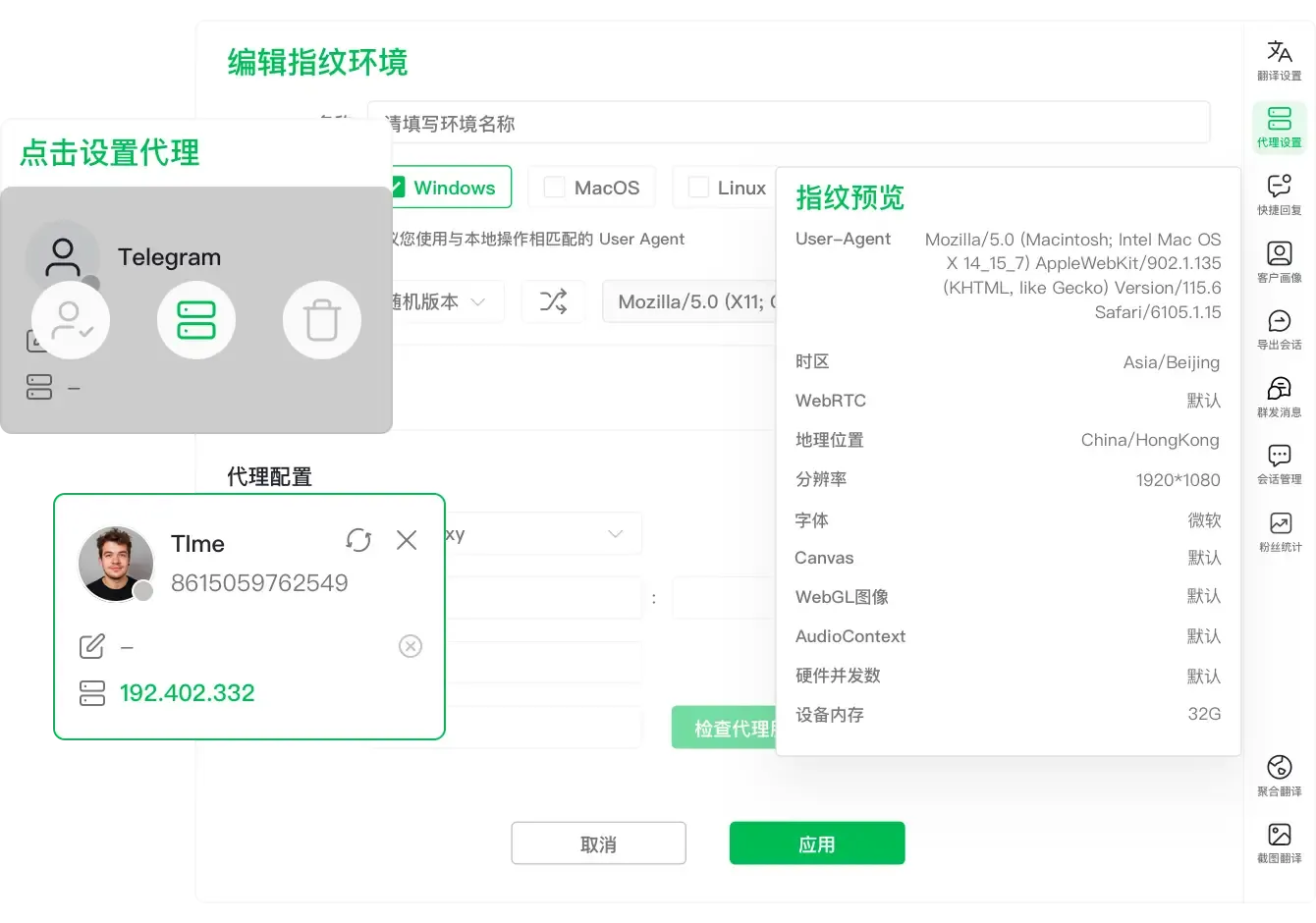 支持为每个账号配置专属代理IP,模拟真实地理位置登录,防止IP关联风险